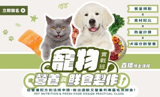 [博愛校區]寵物營養與鮮食製作實戰班|直播線上課程(115/8/22-115/8/29)