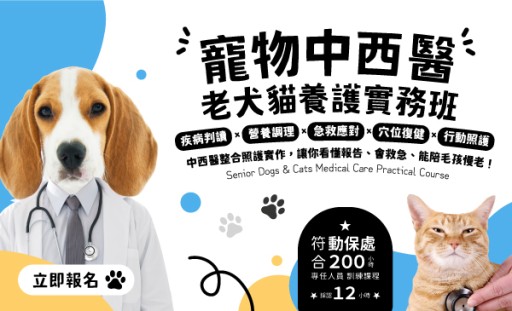 [博愛校區]寵物中西醫老犬貓養護實務班 (115/4/25-115/5/9,5/2停課乙次)