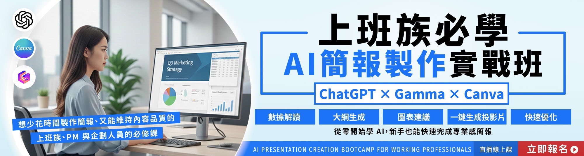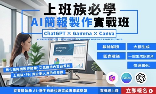 [博愛校區]上班族必學AI簡報製作實戰班ChatGPT x Gamma x Canva|直播線上課程