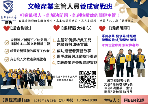 [博愛校區]文教產業主管養成實戰班(8/29)