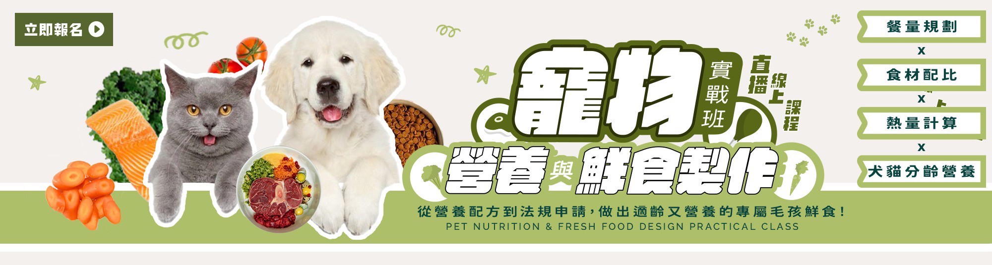 [博愛校區]寵物營養與鮮食製作實戰班|直播線上課程(115/3/21-115/3/28)