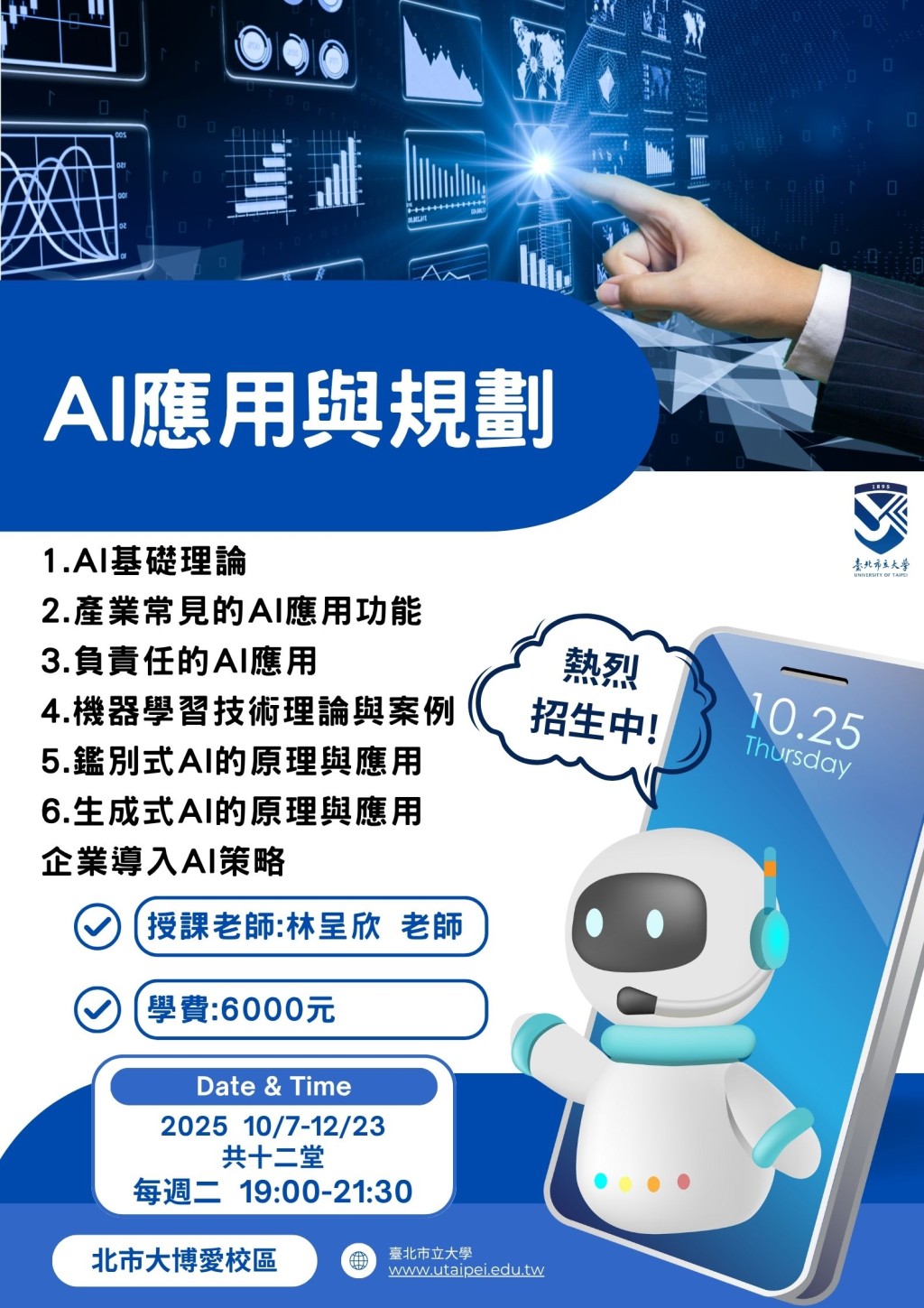 ※推廣處無補課機制,課程期間如自身請假無法補課或辦理退費※。