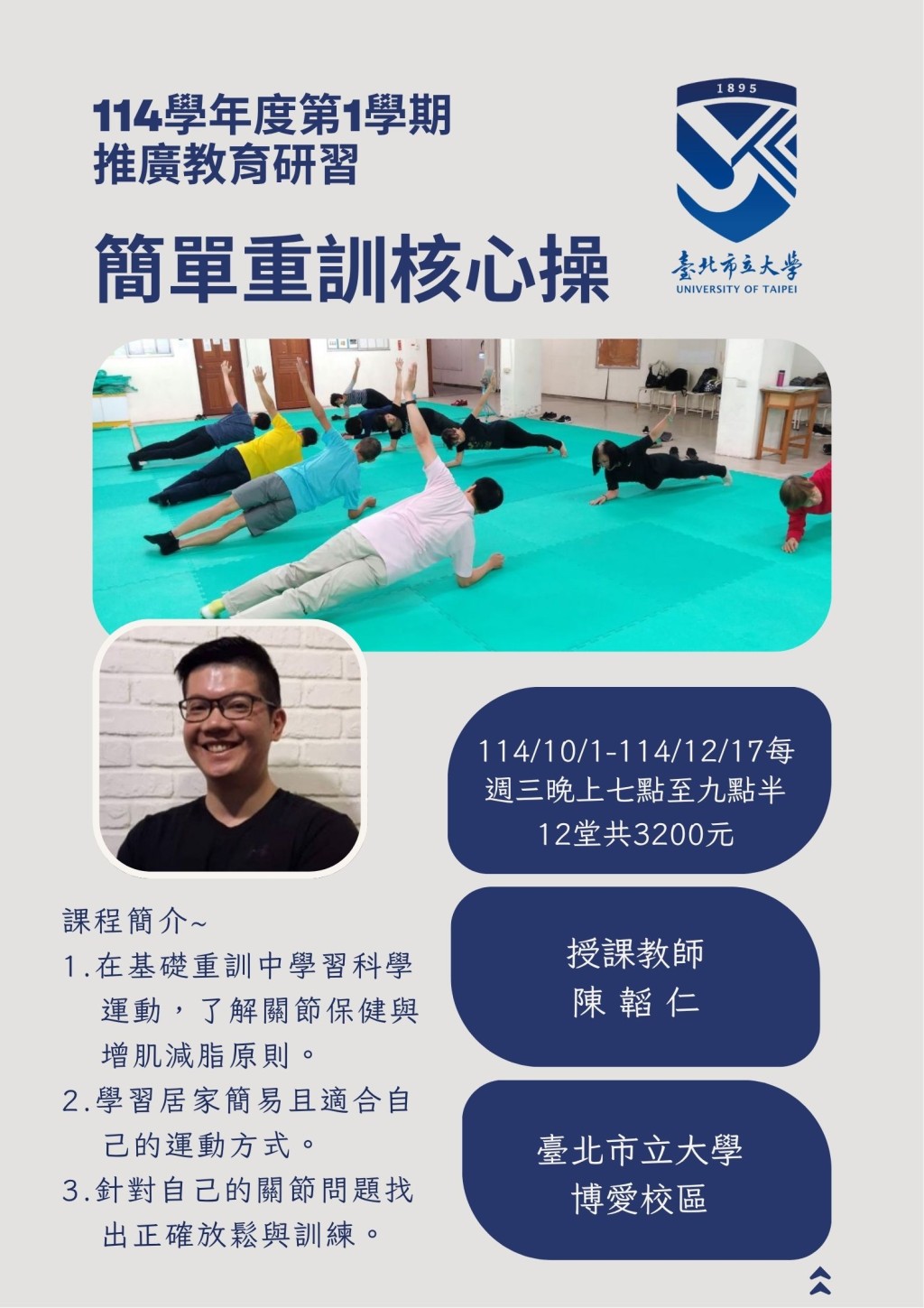 1.在基礎重訓中學習科學運動,了解關節保健與增肌減脂原則。