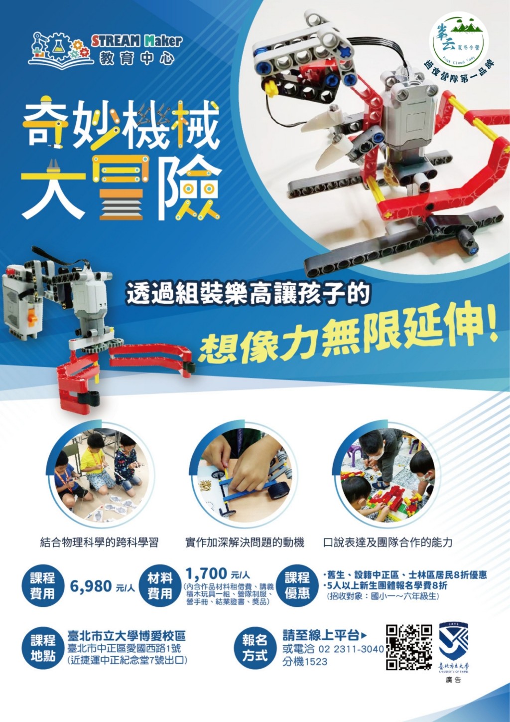 A8:北市大自辦營隊(課程代號A、B、C開頭)學費即包含材料費、午餐費及點心費用;合作特色營隊(課程代號D開頭)學費含午餐費,材料費請於課程第一天繳交現金予營隊講師。