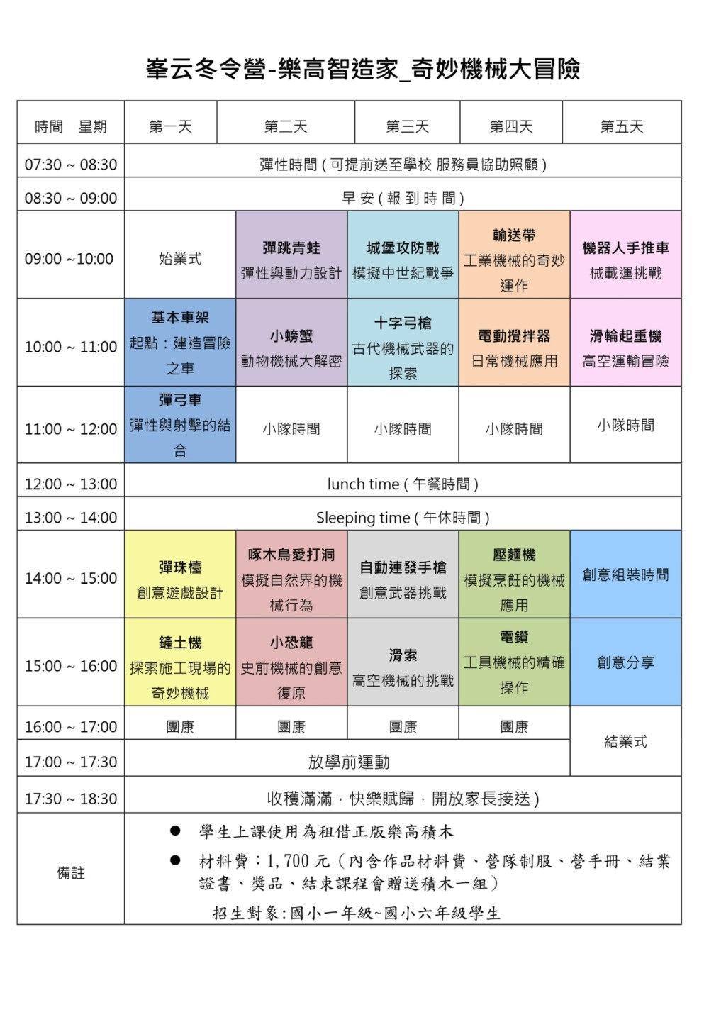 合作營隊學費不含材料費,材料費1,700元請於第一堂課繳交現金。(課程使用租借版樂高進行操作,課程結束贈送一組積木)