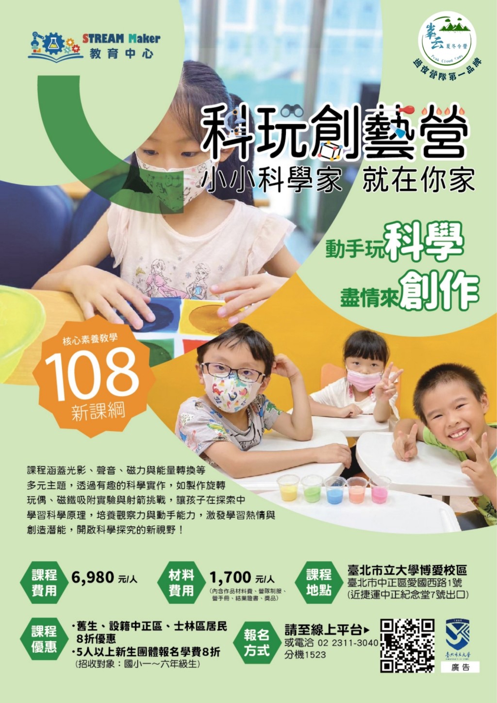 A8:北市大自辦營隊(課程代號A、B、C開頭)學費即包含材料費、午餐費及點心費用;合作特色營隊(課程代號D開頭)學費含午餐費,材料費請於課程第一天繳交現金予營隊講師。