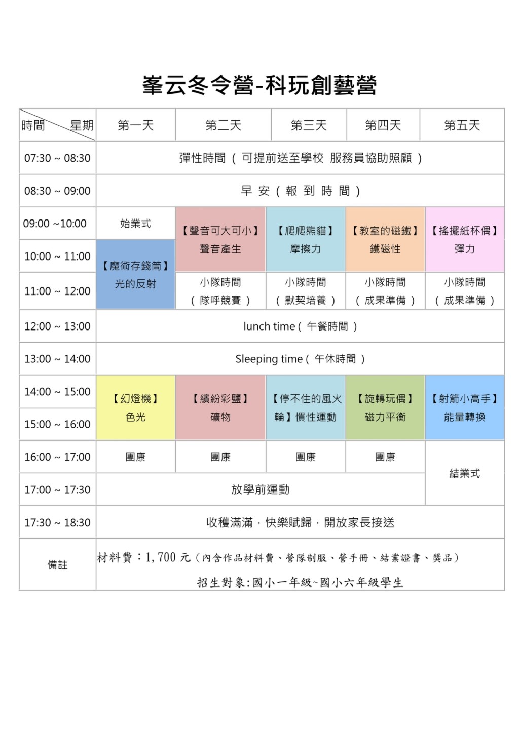 合作營隊學費不含材料費,材料費1,700元請於第一堂課繳交現金。