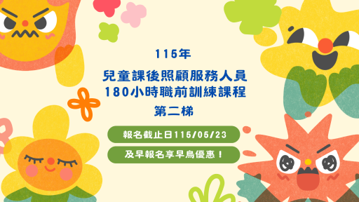 簡章下載:115年「兒童課後照顧服務人員180小時職前訓練課程」第二梯招生簡章