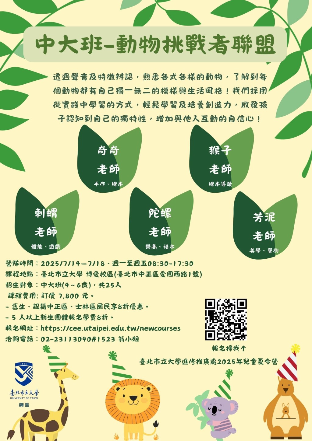 臺北市立大學博愛校區進修推廣處 翁小姐 電話:02-2311-3040 分機1523