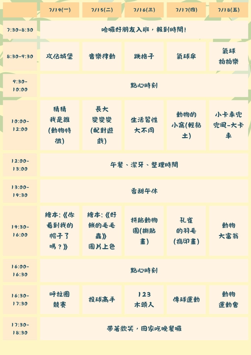 (一)本年度博愛校區夏令營已於6/6報名截止,網站資訊僅提供已報名學員家長瀏覽課表使用。