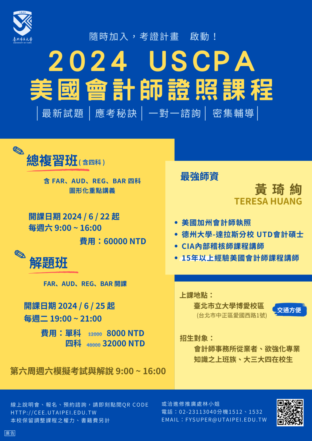 2.採用密集式授課,每週六上課,短時間內掌握課程內容與應考技巧。