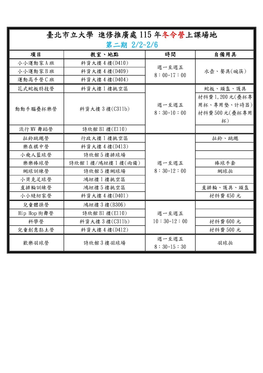 https://cee.utaipei.edu.tw/public_files/downloads/115%E5%B9%B4%E5%86%AC%E4%BB%A4%E7%87%9F%E4%B8%8A%E8%AA%B2%E5%A0%B4%E5%9C%B0(%E7%AC%AC%E4%BA%8C%E6%9C%9F).pdfhttps://cee.utaipei.edu.tw/....../115%E5%B9%B4%E5%86......